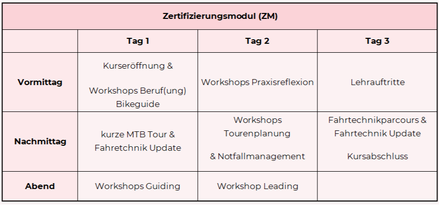 Detailinformationen findest du im Abschnitt IV der Bikeguide Austria Ausbildungsordnung im Downloadbereich.