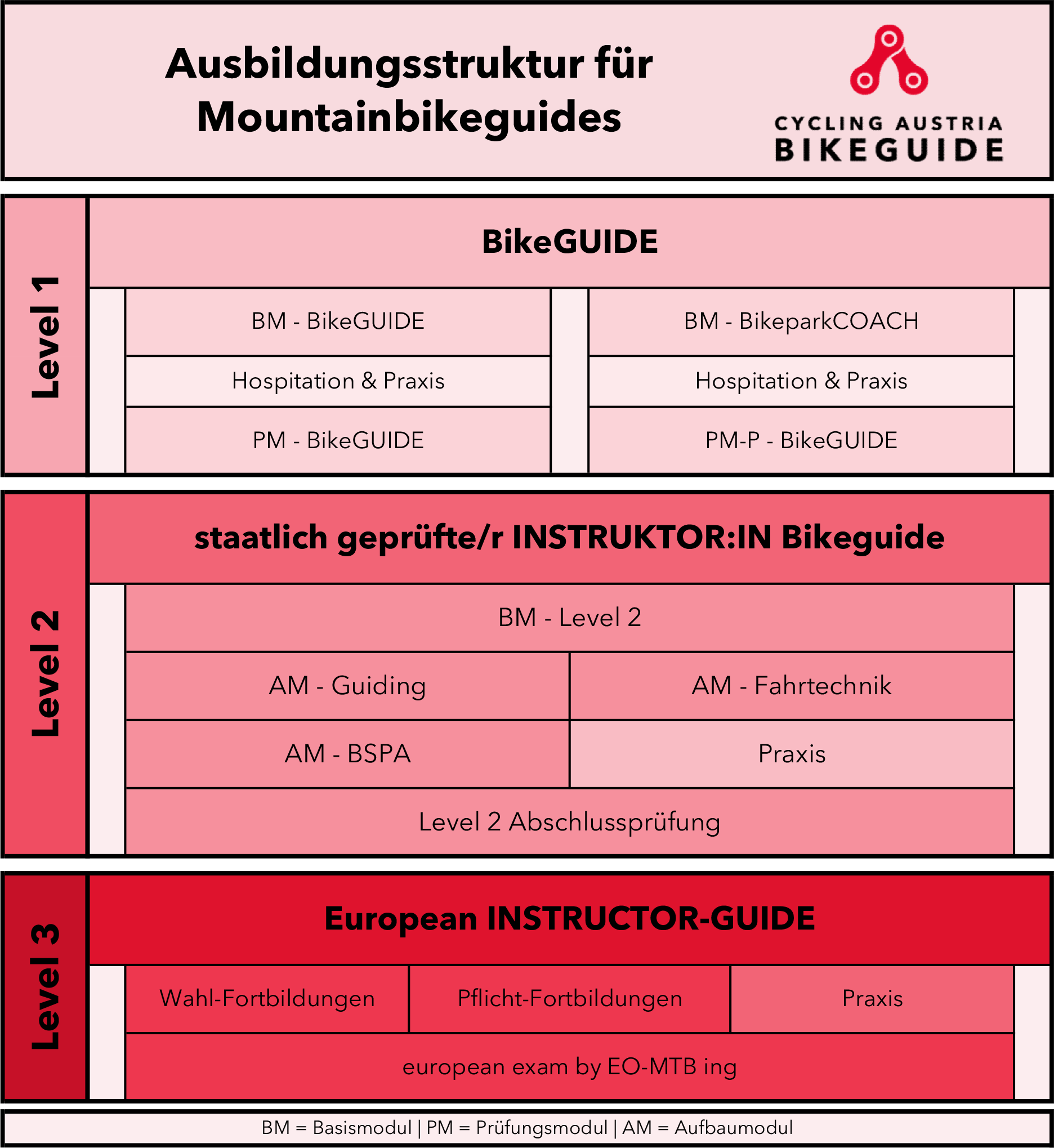 Die Level 2 Ausbildung wird von Bikeguide Austria durchgeführt.